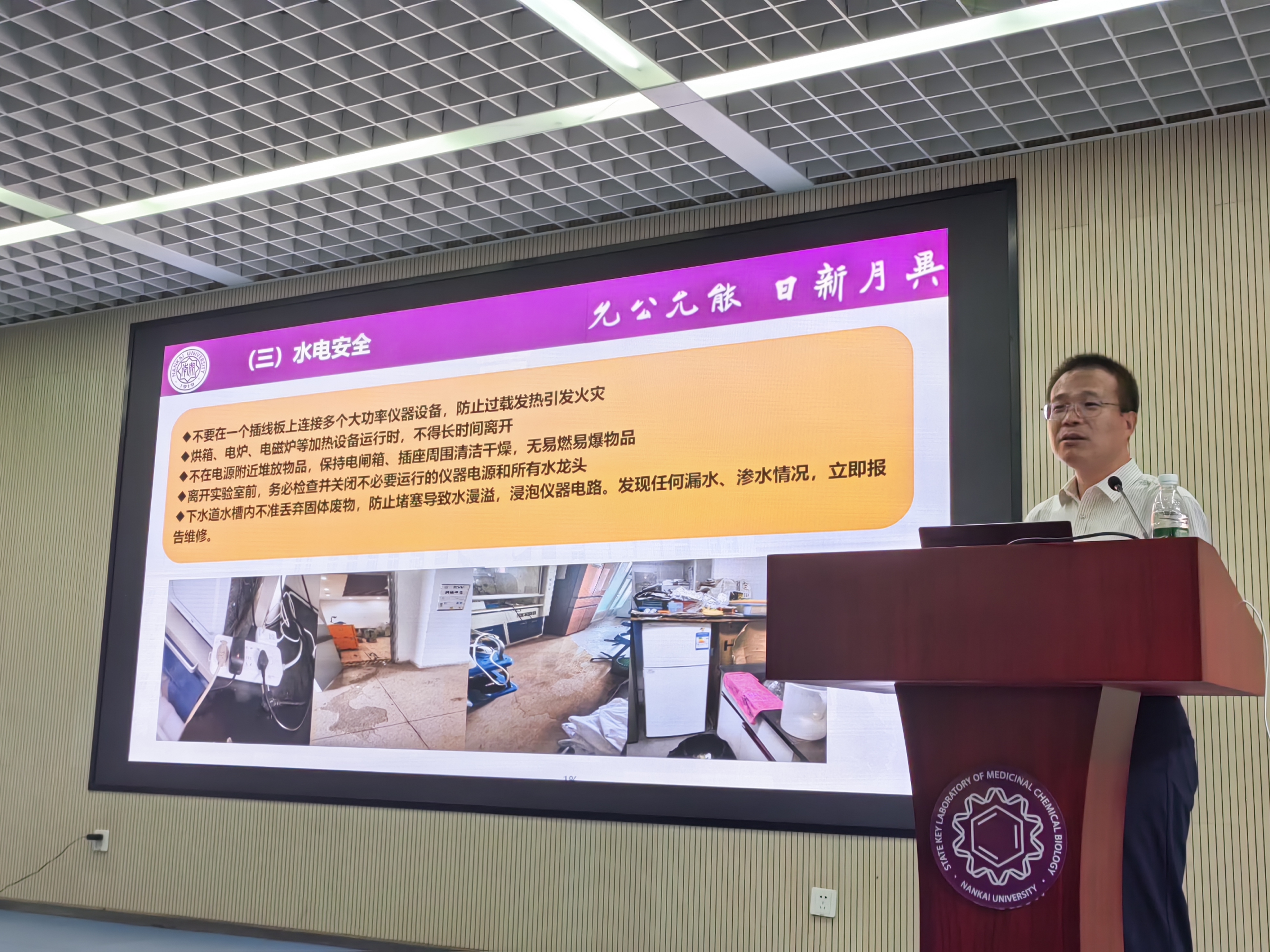 最后,田在宁作专题安全培训报告。介绍了药物化学生物学全国重点实验室安全管理组织架构和责任体系,详细讲解了涵盖危险化学品、特种设备、水电安全、消防安全、实验室废弃物处置、环境卫生等方面的管理规范,并结合典型案例,强调安全意识至关重要,安全技能必不可少,实验室安全“要”在预防,“贵”在坚持,“效”在严格、“成”在落实。培训结束后,田在宁对课题组安全员提出勉励和嘱托,希望大家珍惜岗位,认真履职,牢记使命,勇于担当,发挥好沟通协调和组织落实的作用,为课题组服务,为全重服务。