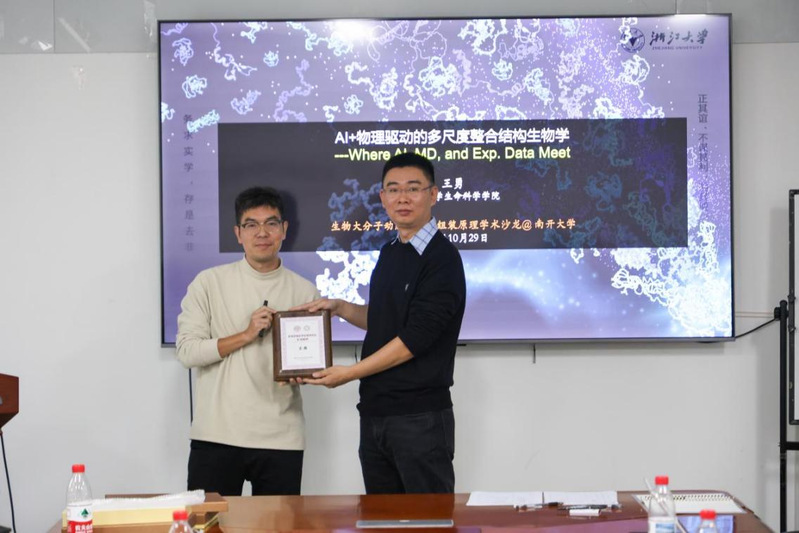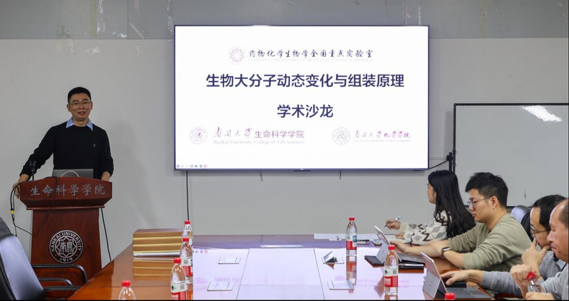 10月29日,由药物化学生物学全国重点实验室、生命科学学院、前沿交叉学科研究院联合主办的“第一届生物大分子动态变化与组装原理”在南开大学八里台校区生物站报告厅成功举行。来自清华大学、浙江大学、中国科学院物理研究所以及南开大学药物化学生物学全国重点实验室、生命科学学院、化学学院、统计与数据科学学院、物理学院等的近50位专家学者和师生参加。