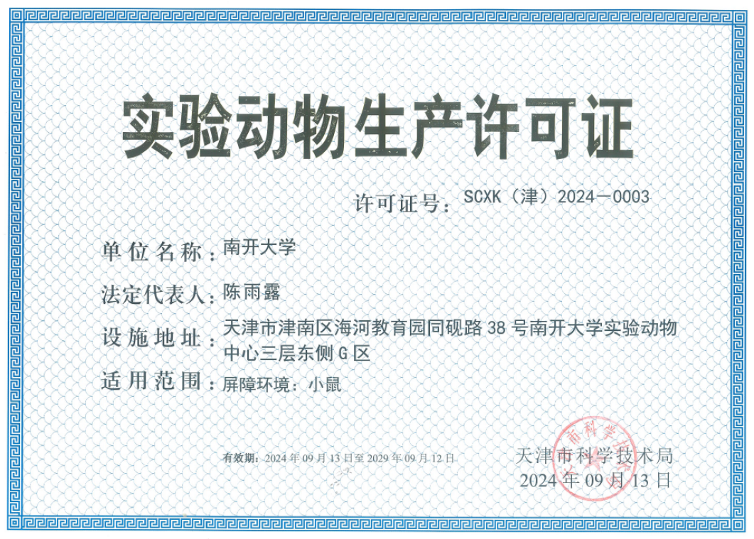 联系地址:南开大学津南校区实验动物中心